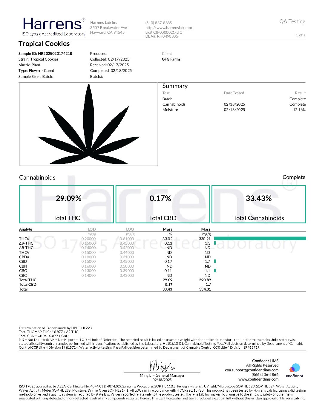 With caryophyllene as its dominant terpene, Tropical Cookies greets you with a vibrant and layered bouquet. Notes of ripe pineapple, juicy mango, and crisp pear mingle effortlessly, creating an aroma that feels like a fresh tropical breeze carried straight from the islands.